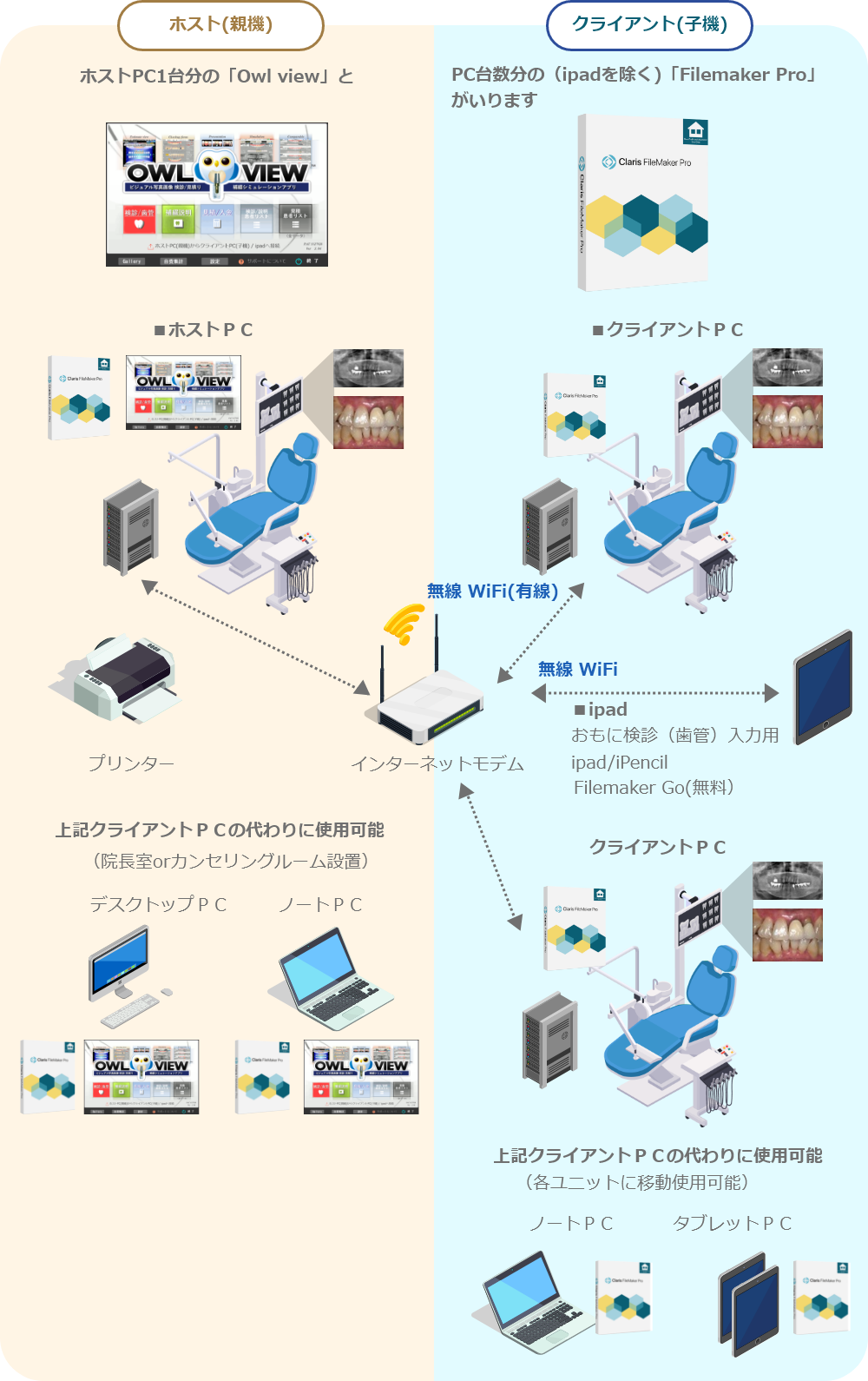 - 各ユニット間のPCがLAN接続されていても、Filemaker Proは、各PCにインストールする必要があります。