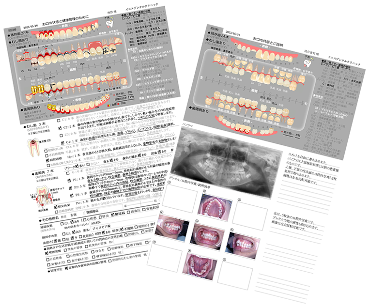 ビジュアルな写真画像での歯管、検診書類を正確、簡単、1シートで渡せます!